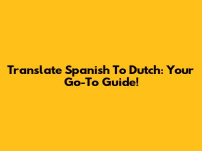 Translate Spanish To Dutch: Your Go-To Guide!