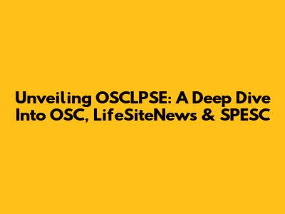 Unveiling OSCLPSE: A Deep Dive Into OSC, LifeSiteNews & SPESC