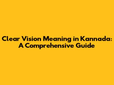 Hey guys! Have you ever wondered what "clear vision" means in Kannada? Well, you're in the right place! In this article, we're going to dive deep into understanding the meaning of clear vision in Kannada, its importance, and related concepts. So, let's get started!