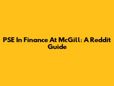 PSE In Finance At McGill: A Reddit Guide
