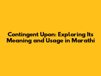 Hey there, language enthusiasts! Ever stumbled upon the phrase "contingent upon" and wondered what it truly means, especially in Marathi? Well, you're in the right place! We're diving deep into the meaning of "contingent upon" and how it translates to and is used in the Marathi language. Get ready to unlock a clearer understanding of this important phrase and its nuances. We'll explore its various applications, offer practical examples, and even provide some helpful tips to ensure you're using it correctly. So, buckle up, and let's get started on this linguistic adventure! Let's explore the core concept, "contingent upon meaning in Marathi."