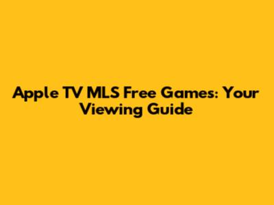 Apple TV MLS Free Games: Your Viewing Guide
