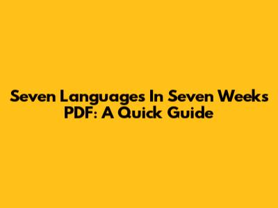 Seven Languages In Seven Weeks PDF: A Quick Guide