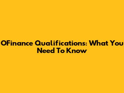 OFinance Qualifications: What You Need To Know
