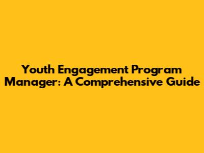 Youth Engagement Program Manager: A Comprehensive Guide