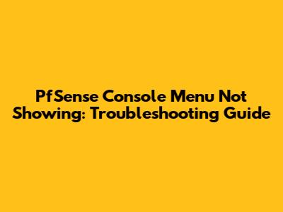PfSense Console Menu Not Showing: Troubleshooting Guide