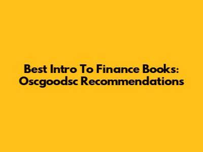 Best Intro To Finance Books: Oscgoodsc Recommendations