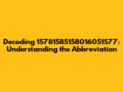 Have you ever stumbled upon a seemingly random string of numbers like 15781585158016051577 and wondered what it could possibly mean? Well, you're not alone! These types of numerical sequences often serve as abbreviations or identifiers in various contexts, from technology and data processing to internal organizational systems. Decoding them can sometimes feel like cracking a secret code, but with a bit of context and the right approach, it's often possible to unravel the mystery behind these enigmatic numbers. In this article, we'll delve into the world of numerical abbreviations, explore the possible meanings behind the number 15781585158016051577, and provide you with some strategies to decipher similar codes you might encounter in the future. So, whether you're a tech enthusiast, a data analyst, or simply curious about the hidden meanings behind numbers, read on to learn how to decode the abbreviation 15781585158016051577. This exploration will not only enhance your understanding of numerical abbreviations but also equip you with the tools to tackle similar challenges in various fields.