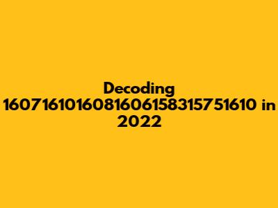 One straightforward approach is to see if the number sequence represents a date or time. We could break it down into segments that might correspond to day, month, and year. However, the length and structure of 1607161016081606158315751610 don't readily align with standard date formats like DD/MM/YYYY or MM/DD/YYYY. It's possible it uses a less conventional format or a specific internal coding system for dates that would be unique to a particular application or organization.