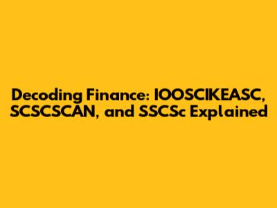 Understanding the intricate world of finance can often feel like deciphering a complex code. Jargon, acronyms, and novel concepts can overwhelm even the most seasoned professionals. In this article, we aim to demystify some of these perplexing terms, specifically IOOSCIKEASC Finance, SCSCSCAN, and SSCSc. Let's break down these terms, explore their potential meanings, and provide insights that can help you navigate the financial landscape with greater confidence.