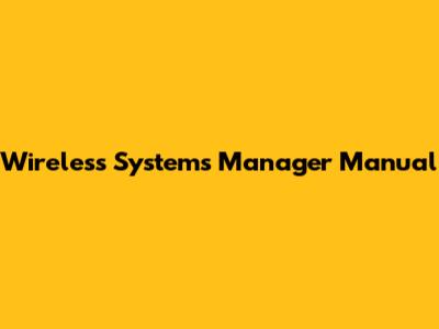 Wireless Systems Manager Manual