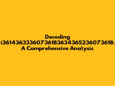 At first glance, i36143633360736183634365236073618 looks like a jumble of numbers and a single letter. The presence of both numeric and alphabetic characters suggests it could be alphanumeric, a common format in computing for creating unique identifiers or encoding data. To really understand it, we need to consider a few possibilities.
