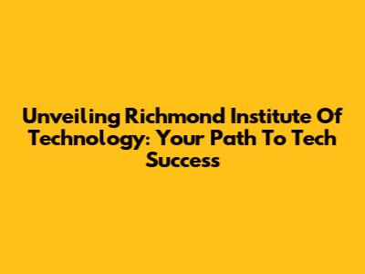 Unveiling Richmond Institute Of Technology: Your Path To Tech Success