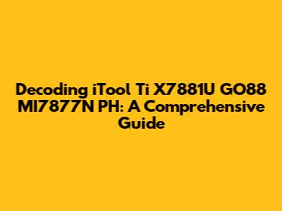 Hey guys! Ever stumbled upon a mysterious string of characters and wondered what it meant? Today, we're diving deep into one such enigma: iTool Ti X7881U GO88 MI7877N PH. This might look like a random jumble of letters and numbers, but there's a good chance it refers to a specific product, model, or even a serial number. Understanding these codes can be super helpful, whether you're troubleshooting a device, looking for compatible accessories, or just trying to figure out what you've got your hands on. So, let's break it down and get to the bottom of this!