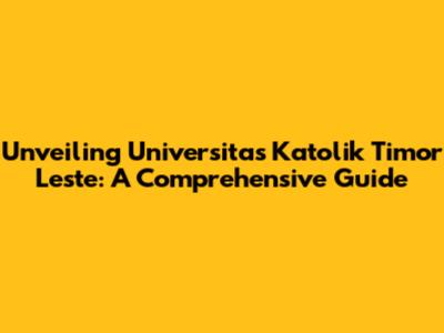Unveiling Universitas Katolik Timor Leste: A Comprehensive Guide