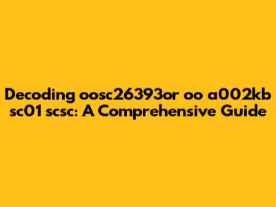 Unveiling the Mystery of oosc26393or oo a002kb sc01 scsc