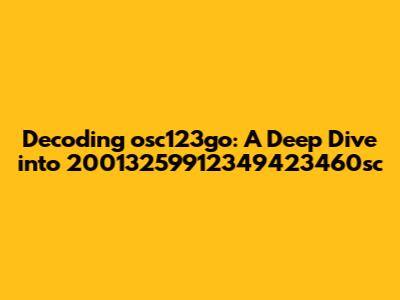 Let's dive deep into the enigmatic realm of osc123go 20013259912349423460sc. This exploration aims to dissect and understand the essence, potential meanings, and implications behind this unique string of characters. Whether it’s an identifier, a code, or a random sequence, our objective is to unravel its layers and provide a comprehensive perspective.