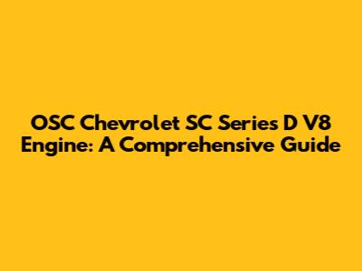 OSC Chevrolet SC Series D V8 Engine: A Comprehensive Guide