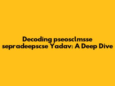 Let's break down the query "pseosclmsse sepradeepscse Yadav" and see how we can create a comprehensive and SEO-friendly article around it. It seems like a combination of potentially related terms or perhaps a specific search query someone might use. Without additional context, we'll approach this by exploring each component and then synthesizing them into a meaningful discussion.