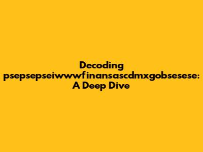 Let's dive deep into understanding "psepsepseiwwwfinansascdmxgobsesese". It might seem like a jumble of characters at first glance, but unpacking it reveals potential connections to specific areas, possibly involving financial data, governmental bodies, or even specific projects. Understanding this string requires a systematic approach, breaking it down into smaller, more manageable parts. We need to consider potential acronyms, domain names, or coding structures that might be embedded within this seemingly random sequence. By doing so, we can start to formulate educated guesses about its origin and purpose.