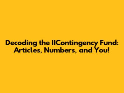 Hey everyone! Ever stumbled upon the term "IIContingency Fund" and wondered what the heck it is? Or maybe you've been trying to navigate the articles and numbers associated with it, feeling a bit lost in the process. Well, you're in the right place! We're going to break down everything you need to know about the IIContingency Fund, its related articles, and those confusing numbers, so you can understand it all. This guide is designed to be super easy to follow, whether you're a seasoned pro or just starting. Let's get started, shall we?