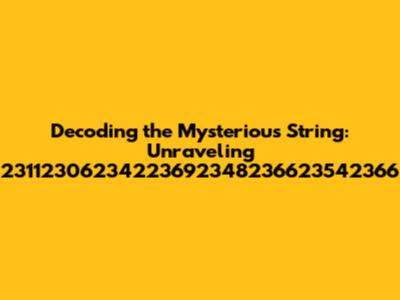 Hey there, fellow digital explorers! Ever stumble upon a sequence of numbers that seems to hold a secret code? Well, buckle up, because we're diving headfirst into the enigmatic world of 23112306234223692348236623542366! Yeah, that's a mouthful, but don't worry, we'll break it down piece by piece. This isn't just about reciting a string of digits; it's about understanding what it could represent, and the journey of discovery is half the fun.