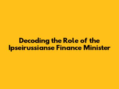 Hey everyone, let's dive into the fascinating world of the Ipseirussianse Finance Minister. This role is a big deal, right? It's not just about crunching numbers; it's about shaping a nation's financial destiny. Think about it: the Finance Minister is the maestro of the economy, conducting the symphony of spending, saving, and investing. This article will break down what the job entails, the impact it has, the challenges they face, and a bit about their legacy.