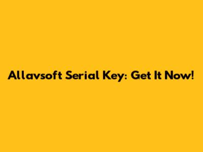Allavsoft Serial Key: Get It Now!