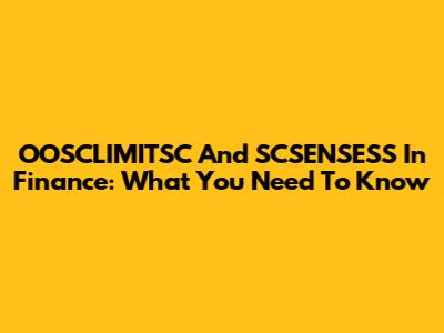 OOSCLIMITSC And SCSENSESS In Finance: What You Need To Know
