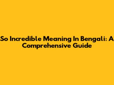 So Incredible Meaning In Bengali: A Comprehensive Guide