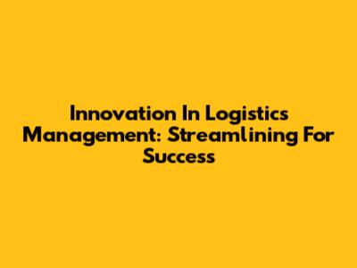 Innovation In Logistics Management: Streamlining For Success