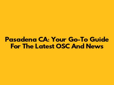 Pasadena CA: Your Go-To Guide For The Latest OSC And News