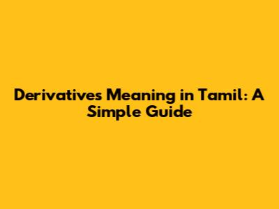 Understanding financial derivatives can be tricky, especially when grappling with new terminology. If you're looking for derivatives meaning in Tamil, you've come to the right place! This guide breaks down what derivatives are, why they're important, and provides explanations in simple terms to help you grasp the core concepts. We'll explore various types of derivatives and their practical applications. Whether you're a student, investor, or just curious about finance, this article will provide you with a solid foundation. Let’s dive in and demystify the world of derivatives together!