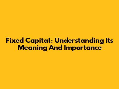 Fixed Capital: Understanding Its Meaning And Importance