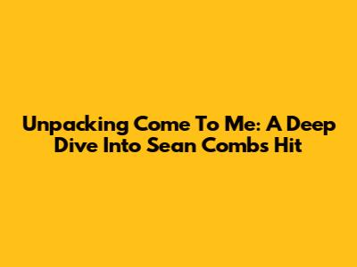 Unpacking 'Come To Me': A Deep Dive Into Sean Combs' Hit