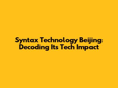 Syntax Technology Beijing: Decoding Its Tech Impact