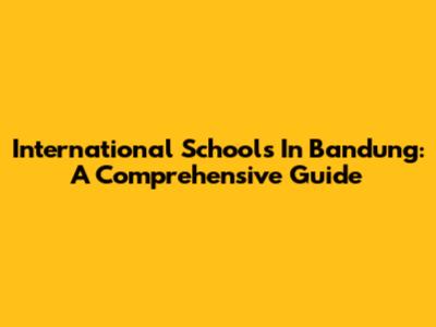 International Schools In Bandung: A Comprehensive Guide