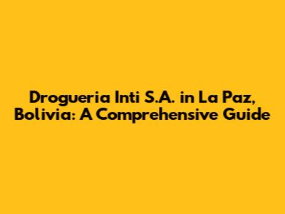 Hey guys! Ever wondered about Drogueria Inti S.A. and its operations in La Paz, Bolivia? Well, you're in luck! We're diving deep into everything you need to know about this key player in the Bolivian pharmaceutical scene. This guide will walk you through their history, services, and impact on the local community, so grab your favorite beverage, sit back, and let's get started. Drogueria Inti S.A. plays a huge role in providing pharmaceutical products in Bolivia. It's a cornerstone of the healthcare system, ensuring access to essential medications. The company's presence in La Paz, the administrative capital, is particularly significant. But what makes Drogueria Inti S.A. stand out? What services do they offer, and how do they contribute to the health and well-being of Bolivians? We will look closely at this pharmaceutical giant. This guide aims to answer these questions and more, offering a comprehensive overview of Drogueria Inti S.A. and its vital role in La Paz and across Bolivia. So, let’s begin our exploration of this important Bolivian company.