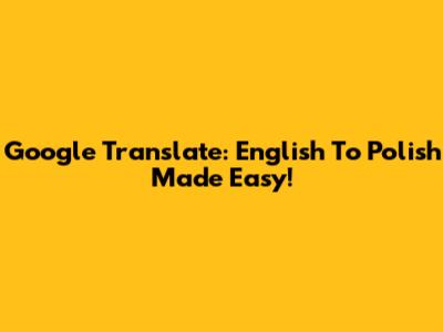 Google Translate: English To Polish Made Easy!