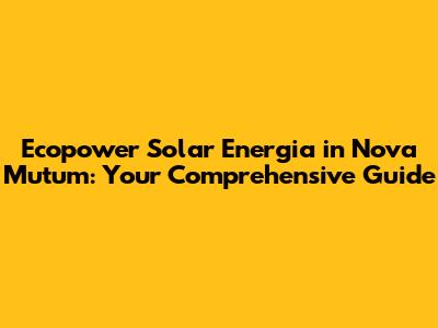 Hey there, solar enthusiasts! Let's dive into the world of Ecopower and how it's lighting up Nova Mutum, shall we? This article is your one-stop shop for everything you need to know about Ecopower energia solar in this vibrant city. We're talking about a complete overview, from understanding the basics of solar energy to how Ecopower can make a difference in your life and the environment. We'll explore the benefits, the costs, the installation process, and much more. So, grab a coffee, sit back, and get ready to become an expert on solar power in Nova Mutum with Ecopower. We're gonna break down complex topics into easy-to-understand terms. This guide is designed for everyone, whether you're a homeowner looking to slash your electricity bills, a business owner aiming to boost your sustainability profile, or simply curious about the future of energy. This is your ultimate resource to understanding the impact of Ecopower energia solar and how it will transform the city. Let's get started!