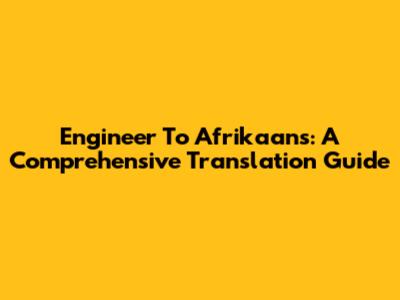 Engineer To Afrikaans: A Comprehensive Translation Guide