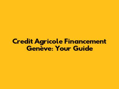 Credit Agricole Financement Genève: Your Guide