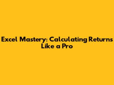 By incorporating these tips and tricks into your Excel workflow, you'll be well on your way to becoming a return calculation expert. These strategies will save you time, improve the accuracy of your calculations, and make your financial analysis more effective. Keep practicing, keep learning, and keep refining your Excel skills – the benefits will be well worth the effort.