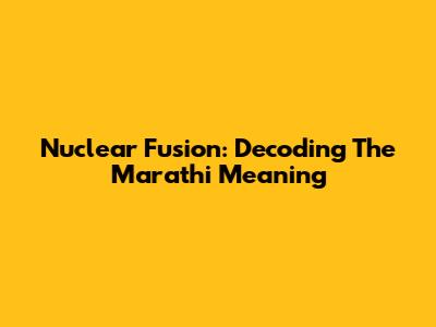 Nuclear Fusion: Decoding The Marathi Meaning
