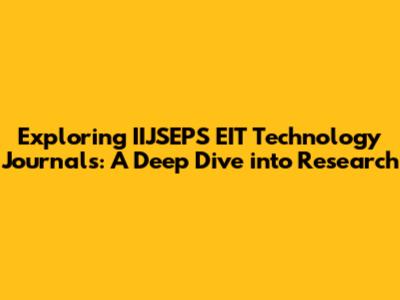 Unveiling the Significance of IIJSEPS EIT Technology Journals