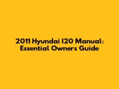 2011 Hyundai I20 Manual: Essential Owner's Guide