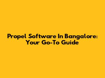Propel Software In Bangalore: Your Go-To Guide