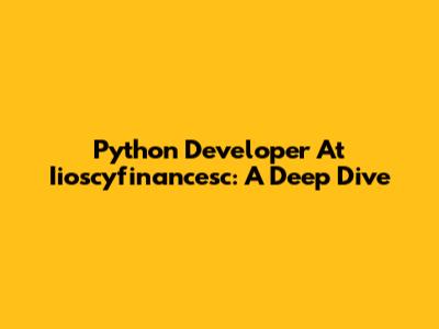 Python Developer At Iioscyfinancesc: A Deep Dive
