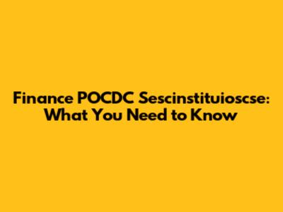 Why is Finance POCDC Sescinstituioscse Important?