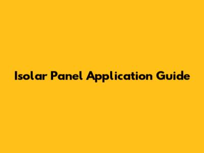 Isolar Panel Application Guide